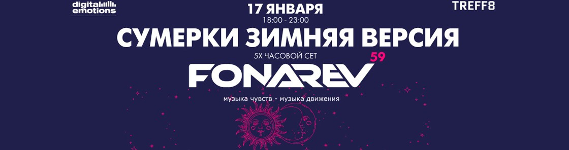 Vladimir Fonarev heads Digital Emotions, a brand with a 20-year history that has proven itself in the Russian and global music market. Today, the Digital Emotions brand unites the record label of the same name, the author's radio program and event - a group specializing in the integrated organization of events and tours. "Music of feelings and music of movement" is the main concept of dj sets and events by Vladimir Fonarev.